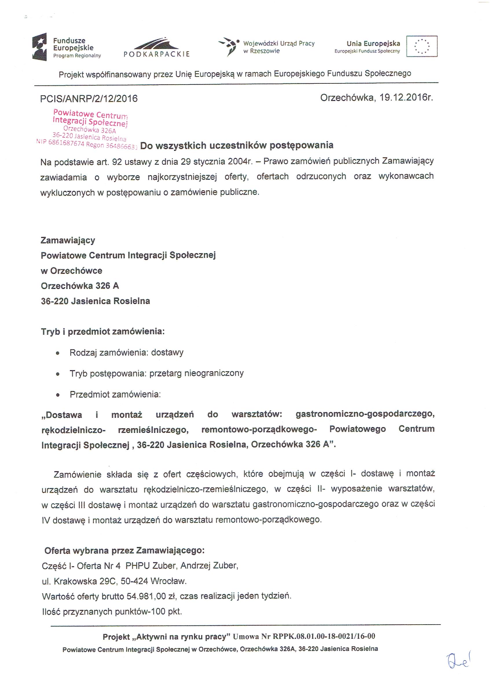 PCIS/ANRP/2/12/2016 Orzechówka, 19.12.2016r.