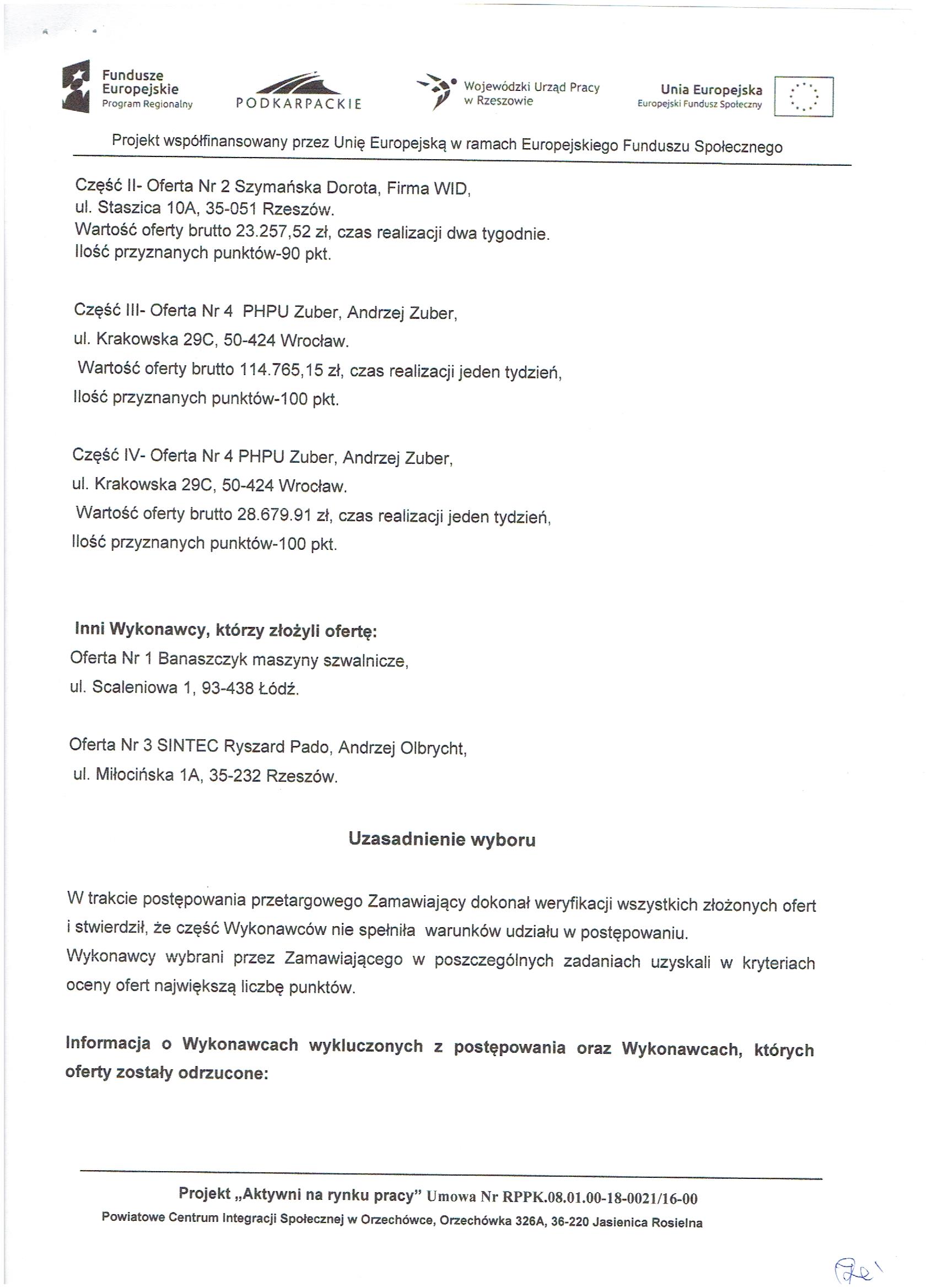 Oferta Nr 3 SINTEC Ryszard Pado, Andrzej Olbrycht, ul. Miłocińska 1A, 35-232 Rzeszów. Oferta została odrzucona ze względów formalnych. Brak załącznika nr 1-formularza ofertowego.